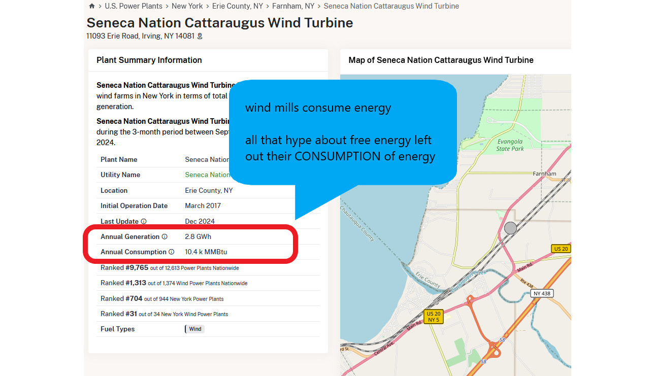 WTF? The state admits this in writing. What are we being poked for then and same with animals? $$$$$$$ THE DRUG COMPANIES ARE WORTH TRILLIONS and congress is all vested interest and the public is being lied to on a massive scale for years. There are no virus. There is only billing. learn more Hocus Medicare's great artificial care declaration Always about money money money the architects of artificial algorythms known as AI which were called FORMULAS are secretive about how these systems will work fabulously at denying care and filling portfolios of the rich few. TV scammer HUSTLER Oz surely will be making money off this. Unalterable Baby Men Dicks (BMD) need to be placed on the blockchain at conception. Kingdoms are not democratic The illusion persists as the kingdoms such as Europe where there are Kings and Drag On Queens in charge are banning Bitcoin currency "interfering" in elections like how not getting a required vaccine interfered with portfolio growth of these in Royalty. The Kingdoms keep a hold on their rule this way as if money freely flowed it would empower those who are not living like Kings and Queen in the Queens. Its still this way in the Not Intact States In Northern America (NISINA). No free flow for thee just for mee says the King who was cut off by a priest when he was a baby at the mercy of the child abusive rule of the Religion and Royalty that promised like a politician "Ever Lasting Life". Wind subsidy towers consume energy The hustlers had said it was FREE. Once again we get dumped on with a pile of lies. Chaotic wind is not free. It requires complex energy management systems based on natural fuels consumption. These are movie sets making the producers rich. Clean energy is an illusion. See how much natural fuels THEY CONSUME. In this case it is consuming 10 TRILLION British thermal units. It is only producing 28 billion giga watt hours (2.8 million kilo watt hours). It does not say how many kilo watt hours it WASTES. These will be spinning and NOT PRODUCING USABLE POWER yet that is counted as wattage it is producing. Its a big forking in the road SCAM. ![]() ![]() ![]() 2.4 kilo watt hours for 42,000 homes thats = 100,800,000 watt hours ONLY 3 HOURS and that is only if the wind turbine operates 24/7 which never happens they only provide about 7% of what is promised in energy la la land. So thats only powering 3,090 homes for 3 hours. Residents at another disgusting wind delusion farm told how their homes are now thumping with horrible sounds from these crap energy scams. Hear this ladys awful experience. ![]() ![]()