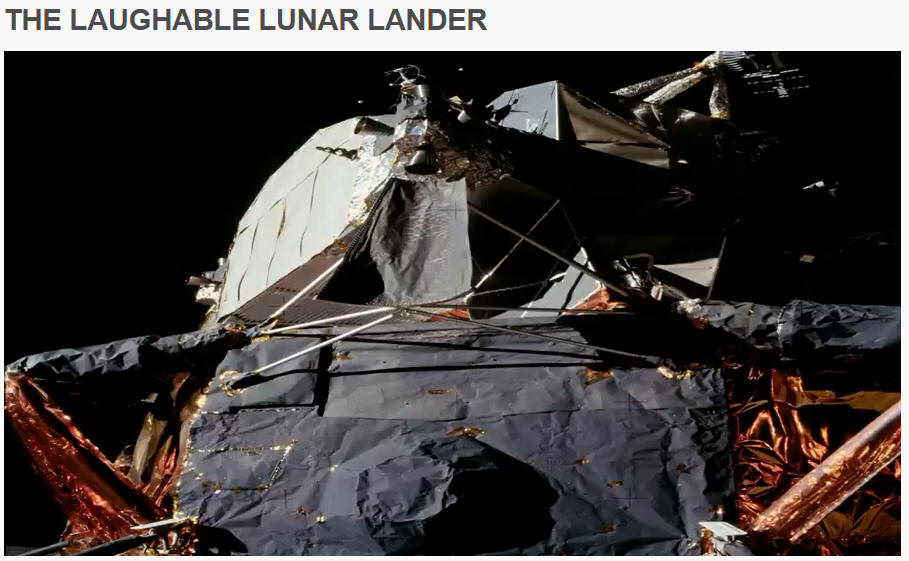 Wondering which high school created this piece of junk in art class! Made with paper mache, gold foil, card board pulled out of a trash bin, curtain rods, all thrown together, it's a joke to think this heap ever went to the moon. I can just hear them saying in crunch time, "Hey let's go with it and see if anyone notices" and no one did.