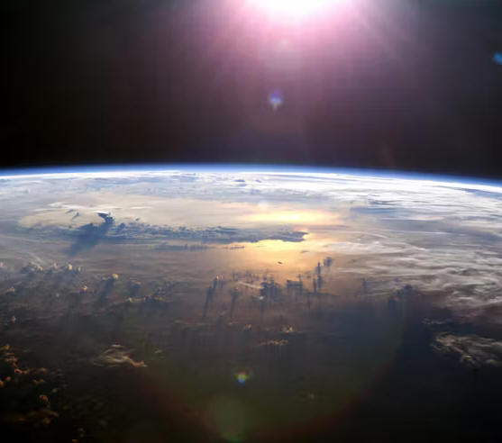 Look at this image, we see clearly the big body of water and some land, other areas are covered in clouds and haze, we can not see the land there. So lets go down to this open area with no clouds, we are at ground globe tard level, and look up, we should see dark space, instead we see bright blue sky. No one ever explains in any way that makes any sense they just repeat their mantras.