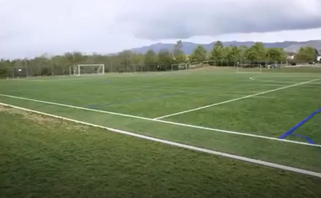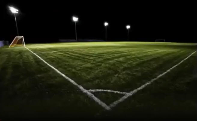 Notice the artificial lighting at night on a soccer field. Concentrated. Just like in the image of the "man on the moon" which appears tiny.