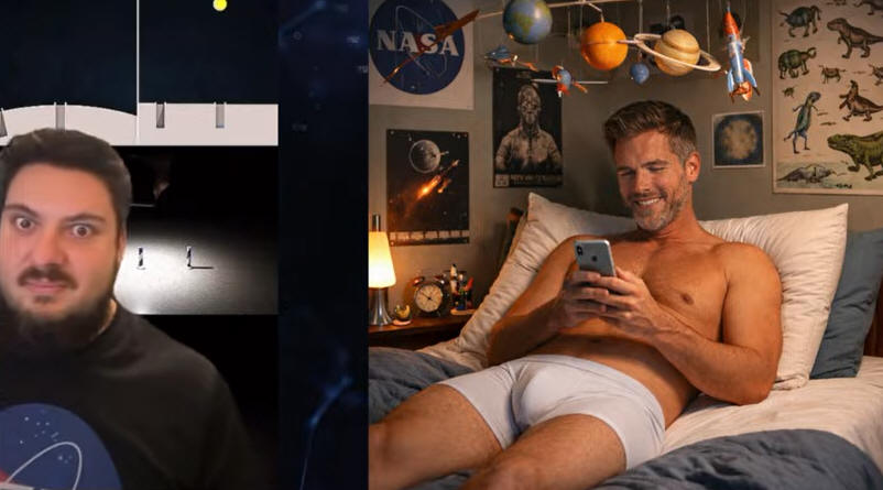 Filming a fake "space" launch. Screens are all black is one clue pops out. It is also obvious fakery in this segment where one camera is pointed straight up 89 degrees, another is pointed a little down about 79 degrees, another is angled about 45 degrees, another is a camera phone pointed straight across