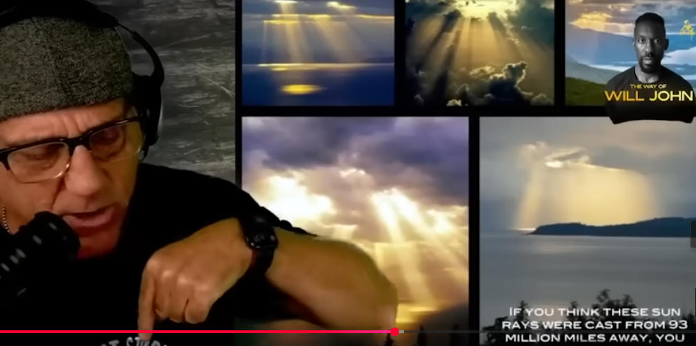 But his point is so retarded as hes looking at distance angles and parallax here like he has pointed out in other discussions. I'm sorry but that indicates hustle to me. The sun may indeed be 93 million miles away BUT THE CLOUDS ARE ABOUT 2 TO 5 MILES AWAY! Parallel rays but they appear not parralel based on PERSPECTIVE. Bad Dave. H's fun to listen to regardless of what he does not regard.